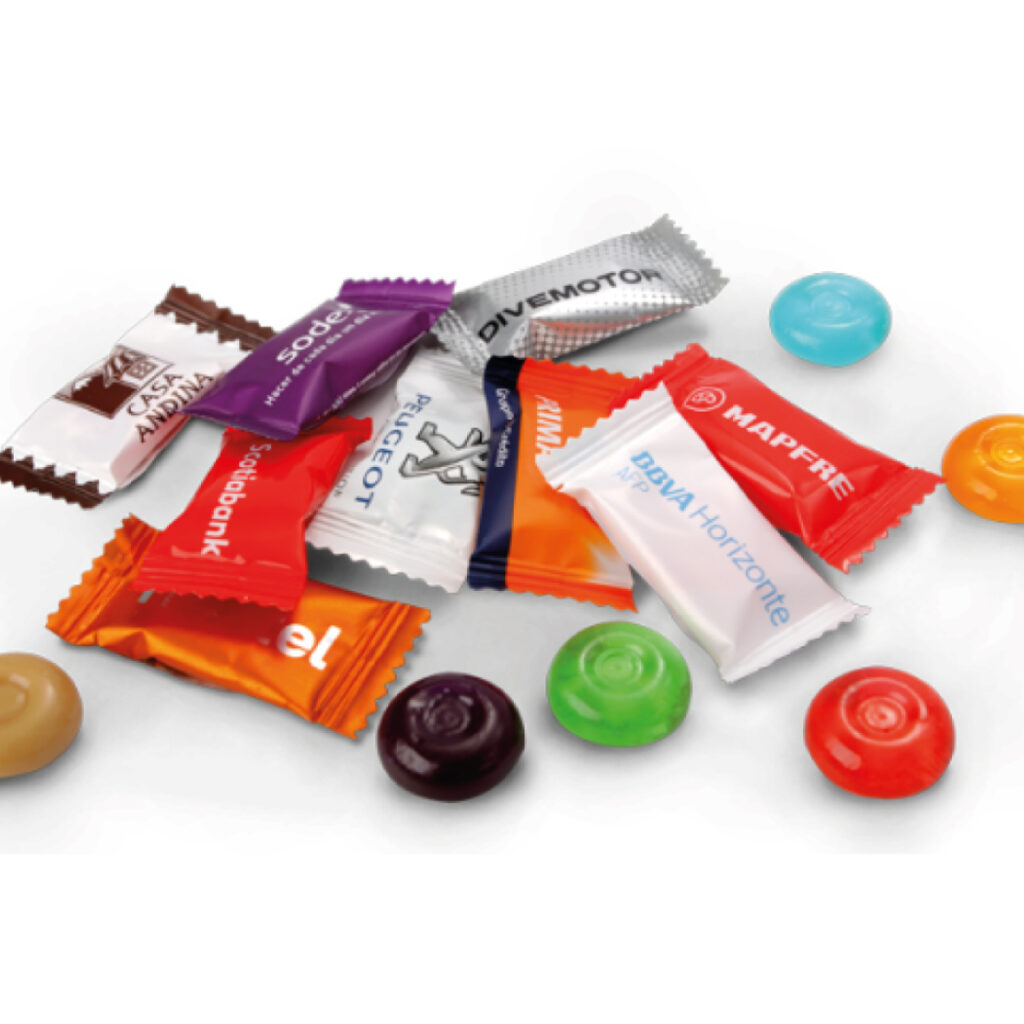 Un detalle dulce que también comunica. Personalizamos caramelos y golosinas con el logo de tu empresa, ideales para repartir en ferias, eventos, recepciones, tiendas o como parte de un packaging promocional.
